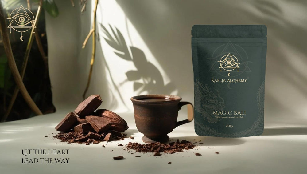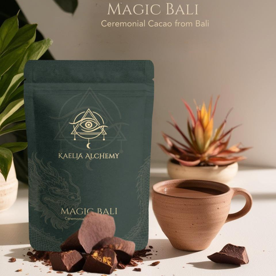 Erlebe die Magie Balis mit unserem Magic Bali Zeremoniellen Kakao von Kaelia Alchemy – eine sanfte Einladung, dein Herz zu öffnen und in den Fluss des Lebens einzutauchen.